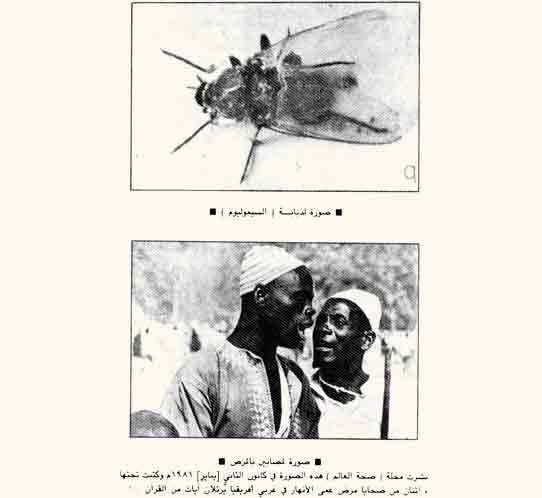 نشرت مجلة (صحة العالم) هـذه الصورة في كانون الثاني (يناير) ،1981م، وكتبت تحتها: (اثنان من ضحايا مرض عمى الأنهار في غربي أفريقيا يرتلان آيات من القرآن الكريم) [ ص: 88 ] الخضراوات ذات الأوراق الخضراء. فإذا أردنا وقاية كل أطفال وأولاد إقليم الشرق الأوسط المسلم المصابين بنقص التغذية -وهم حوالي ستين مليونا- بإعطائهم كلهم فيتامين (أ) لما احتجنا لأكثر من دولار لكل عشرة منهم؛ أي ما مجموعه ستة ملايين دولار أمريكي، فهل هـذا كثير لوقاية المسلمين من العمى؟