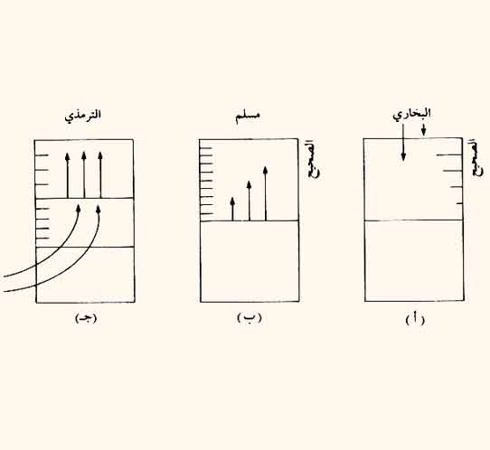 وقد عرف الترمذي مصطلحه هـذا، ونظر إلى الحديث من الأدنى إلى الأعلى، فيما نظر البخاري ومسلم من الأعلى إلى الأدنى، ونظر مسلم من أدنى الصحيح إلى أعلاه كما في (أ) ، (ب) ، (ج) .
