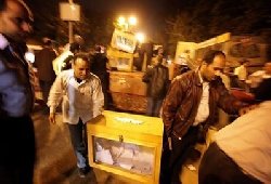 Egyptian election officials unload ballot boxes from a truck in Cairo's Imbaba neighborhood.