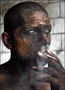 A young miner smokes after he came up from coalface at the end of his shift, September 2003, at Skochinsky mine, one of the deepest and most dangerous, in Donetsk, eastern Ukraine. (AFP)