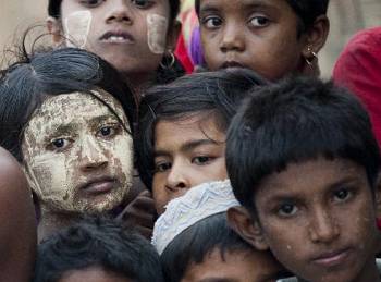 Ethnic Rohingya Muslim children at a camp set up outside the city of Sittwe in Myanmar's Rakhine state on May 20, 2015