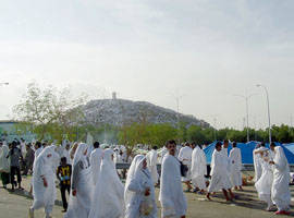 Le quatrième jour: Le premier des jours du Tachriq A Mina, en ce jour, le pèlerin lance les cailloux contre les trois Djamarates. Suivant la Sunna, il doit commencer par la petite Djamra, puis la moyenne et enfin la grande (celle appelée Al Aqaba). Il lance sept cailloux contre chaque Djamra, en disant à...